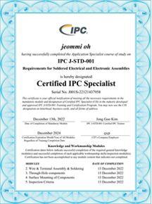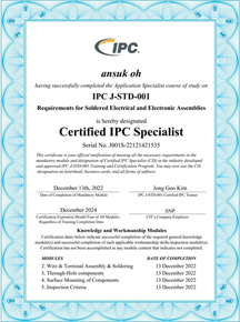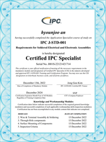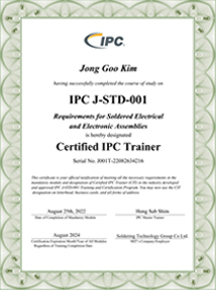 IPC 솔더링 국제 표준 자격 (IPC-J-STD-OO1 CIT / IPC-J-STD-001 CIS)을