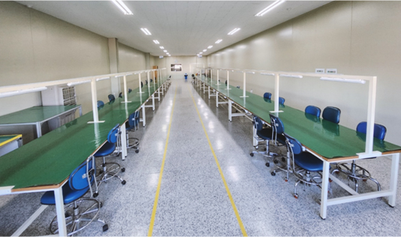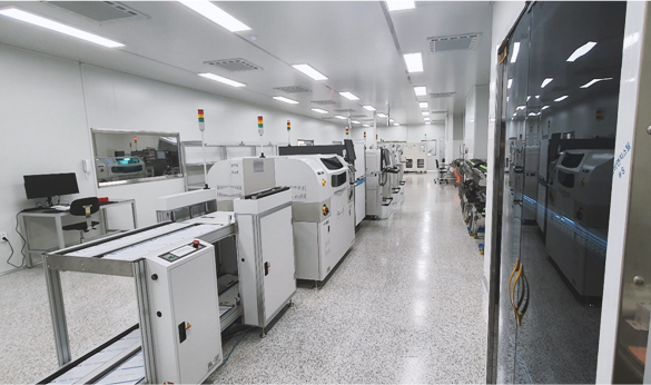- 고 신뢰성 SMT Line으로 10,000 Class 수준으로 클린룸과 우주급 기상 Reflow 도입으로 높은 수준의 신뢰성이 필요한 인공위성, 상위산업 제품 생산에 탁월